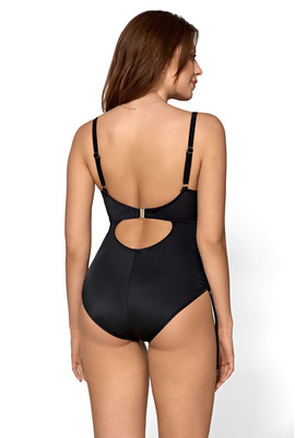 • Цельный купальник из Польши подчеркивает красоту женской фигуры, делая ее стройной и манящей. Однотонные вставки по бокам визуально сужают и удлиняют силуэт. Бюстгальтер с полными чашечками, усиленный на косточках, отлично поддерживает бюст и создает заманчивый вырез. Бюстгальтер застегивается на застежку. Ремешки - несъемные, регулируемые с антиаллергенным регулятором металла.