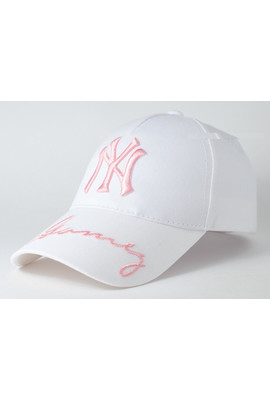 Женская белая бейсболка с пудровой вышивкой NY - 03080-6