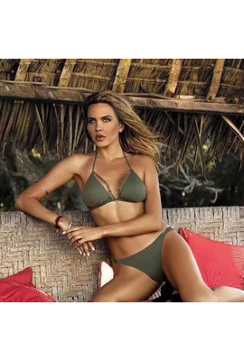 Женский раздельный купальник с чекером и лифом в форме треугольник. Цвет: Хаки Бюст на уплотненной основе, также на завязках на шее и спинке. Трусики закрытые средней посадки. Размер: S, M, L, XL.