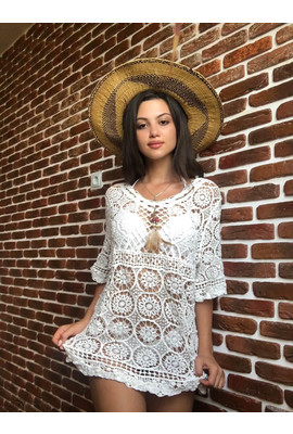 Пляжная туника не только выделит ваш пляжный образ, но и защитит тело от солнечных лучей! Короткая пляжная вязанная туника, белого цвет, рукав 3/4. Размер: Free Size.