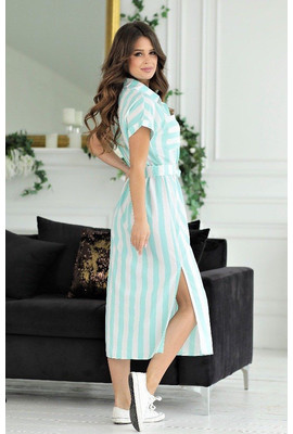 ЛЕТНЕЕ ПЛАТЬЕ-РУБАШКА В ПОЛОСКУ - 197.20 БЕЛЫЙ+МЯТА