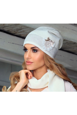 Шерстяная шапка ТМ Камея "Аврора" молочная и белая