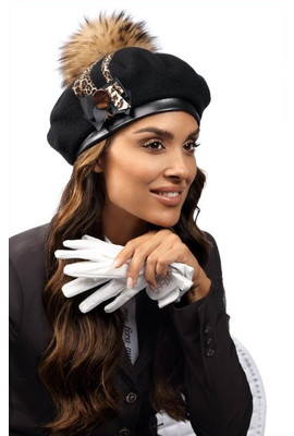 • Стильный женский берет из 100% шерсти. Сбоку украшен двумя леопардовыми строчками и бантиком. Помпон из натурального меха. Дополняет дизайн изделия фирменная шильда.