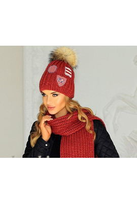 Шапка женская (BOZENA): шапка Одинарная шапка крупной вязки, украшена шевронами с вышивкой, пайетками, стразами и помпоном из енота. Шарф крупной вязки, украшен шевронами с вышивкой, пайетками и стразами. Страна производитель: Польша Фирма пр...