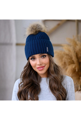Шапка с подворотом и помпоном "Мариэтта" - 197-003 синий