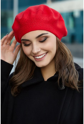 Женский берет украшенный стразами "София" - 5119-1 красный