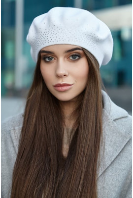 Женский берет украшенный стразами "София" - 5119-1 белый - Интернет-магазин - ELENKA