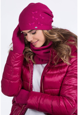 ZIRA - стильная женственная шапка, украшенная аппликациями в виде стрекоз. Сзади крепится защипами. Доступен в насыщенном цветовом исполнении, благодаря которому каждая из дам найдет свой цвет. Состав: 50% акрил; 30% шерсть; 20% полимид.