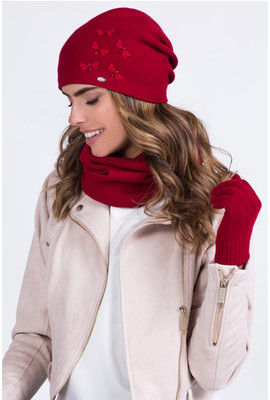 ШАПКА, УКРАШЕННАЯ АППЛИКАЦИЯМИ В ВИДЕ СТРЕКОЗ "ЗИРА" (ZIRA) - 21 красный