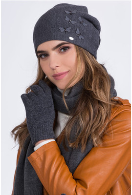 ШАПКА, УКРАШЕННАЯ АППЛИКАЦИЯМИ В ВИДЕ СТРЕКОЗ "ЗИРА" (ZIRA) - 07 графит - Интернет-магазин - ELENKA