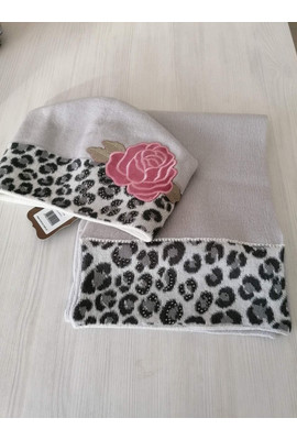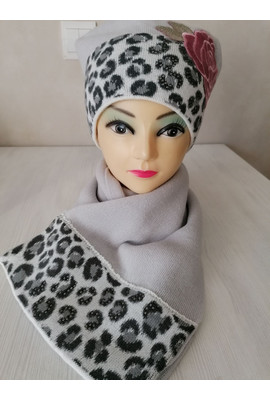 Комплект "Джоана" (шапка и шарф) светло-серый с розовой розой
