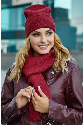 Потрясающий комплект: шапка и шарф "Беатрис" - 5044-10 бордо - Интернет-магазин - ELENKA