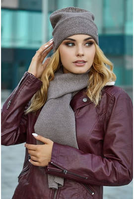 Главная страница Женские шапки Осень-Зима Потрясающий комплект: шапка и шарф "Беатрис" - 5044-10 темный кофе