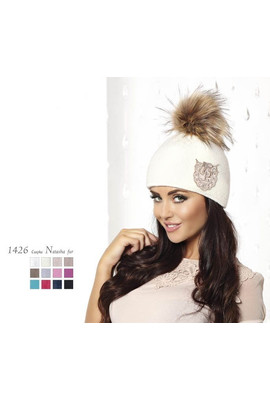 Шапка "Наташа-мех" - 1426 терракот, тёмно-синий и чёрный