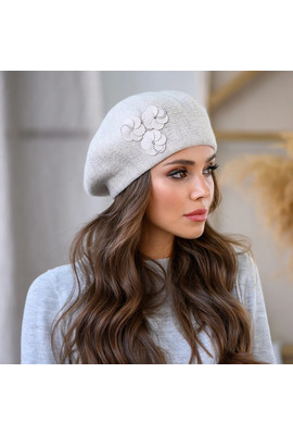 Главная страница Женские шапки Осень-Зима Берет-цветок - 368-020 беж меланж