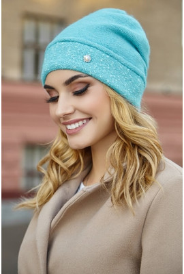 Изображения Классическая стильная теплая шапка "Маритим" - 4918 бирюзовый - Интернет-магазин - ELENKA