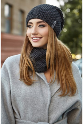 Главная страница Женские шапки Осень-Зима Комплект: шапка-колпак и шарф-хомут - 4731-7 графит