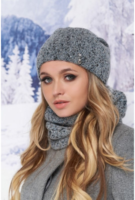Блестящий комплект двойка "Бетани" (шапка и шарф-хомут) - 5001-7 темно-серый