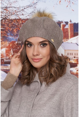 Берет с флисовой подкладкой и помпоном «Ляманта» - 6016 темный кофе