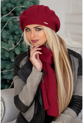 Главная страница Женские шапки Осень-Зима Романтичный комплект: берет и шарф "Беата" - 2270-01-10 бордовый
