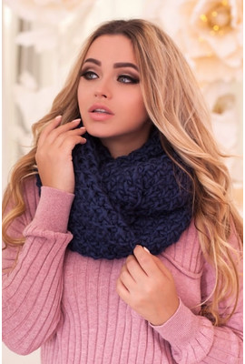 Женский широкий шарф-снуд крупной вязки "Марена" - 4617-88 джинс - Интернет-магазин - ELENKA