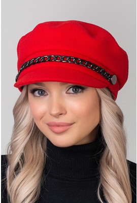 Главная страница Женские шапки Осень-Зима Кепи "Ника Цепь ушки" (козырек основа) - красный