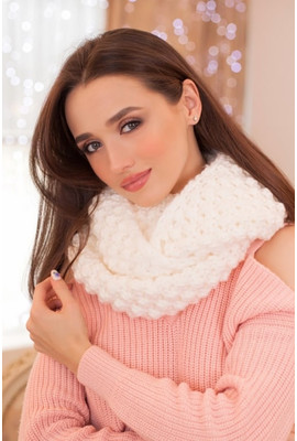 Изображения Практичный обьемный шарф-снуд "Сара" - 4381-88 белый - Интернет-магазин - ELENKA