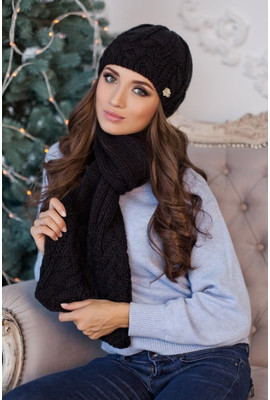 Изображения Комплект крупной вязки "Камелия": шапка+шарф - 4363-10 черный - Интернет-магазин - ELENKA