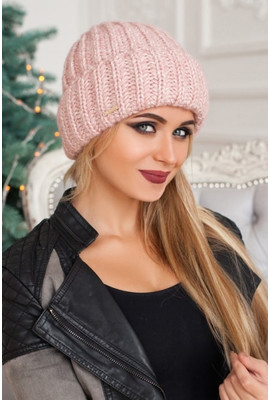 Модная обьемная шапка с отворотом "Кевин" - 4357 пудра