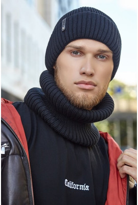 Главная страница Мужские головные уборы Комфортный мужской комплект "Итан" (шапка и шарф-хомут) - 5033-4927-7 черный