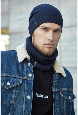 Супер мужской комплект "Реал": шапка и щарф-хомут - 5129-7 джинсовый