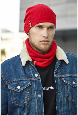 Супер мужской комплект "Реал": шапка и щарф-хомут - 5129-7 красный
