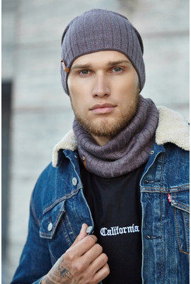Супер мужской комплект Реал (шапка и шарф-хомут) 5129-7 темный кофе