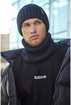 Мужской комплект с флисом "Канзас": шапка и шарф-хомут - 4732-4927-7 джинс
