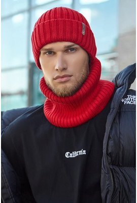 Отзывы Мужской комплект с флисом "Канзас": шапка и шарф-хомут - 4732-4927-7 красный - Интернет-магазин - ELENKA