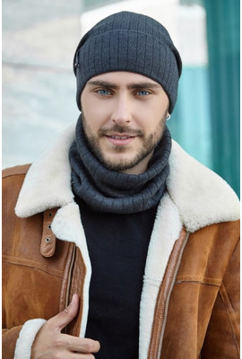 Универсальный мужской комплект "Хорс": шапка и снуд - 5127-5129-7 графит