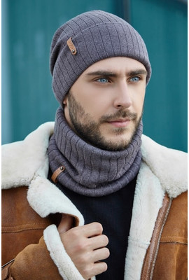 Универсальный мужской комплект "Хорс": шапка и снуд - 5127-5129-7 темный кофе