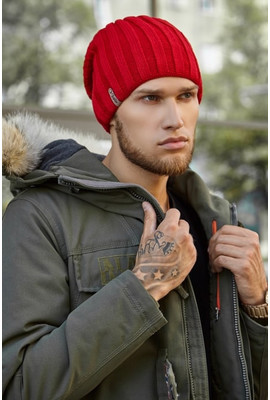 Трендовая мужская шапка-колпак "Монблан" - 5038 красный - Интернет-магазин - ELENKA