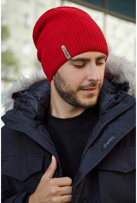 Стильная мужская шапка с флисовой подкладкой "Алитер" - 5037 красный
