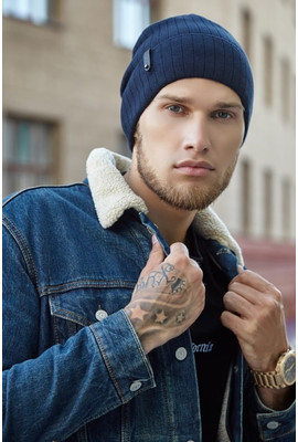 Мужская шапка с отворотом и флисовой подкладкой "Хорс" - 5127 джинс - Интернет-магазин - ELENKA