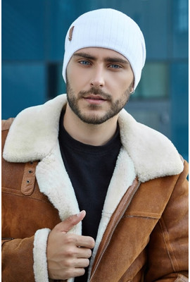 Главная страница Мужские головные уборы Мужская шапка с отворотом и флисовой подкладкой "Хорс" - 5127 белый