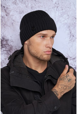 Зимняя мужская шапка с отворотом "Джеймс" - 5026 черный