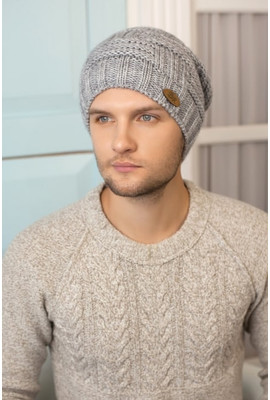 Мужская шапка-колпак с узором "Макс" - 4701 светло-серый - Интернет-магазин - ELENKA