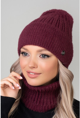 Главная страница Женские шапки Осень-Зима Шикарный женский комплект "Сакура" - бордо