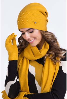 Женская шерстяная шапка Рена (Rena). Производитель фирма Kamea, Польша Шапка двойной вязки, шапка нежная, шапка однотонная, украшена аппликацией с камушками и фирменной металлической шильдой. Состав: 40% акрил, 25% вискоза, 20%шерсть, 15% эластан. Разм...