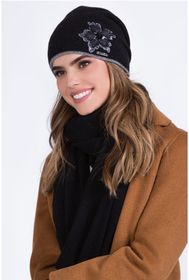 Шапка PANAMA, украшенная крупным цветком с пайетками и тонкой полосой контрастного цвета по краю. Сзади шапка закреплена защипами. Доступна в широком цветовом исполнении, благодаря которому каждая из женщин найдет свой цвет. Состав: 80% шерсть; 20% пол...