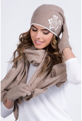 ЖЕНСКАЯ ШЕРСТЯНАЯ ШАПКА С КРАСИВЫМ ЦВЕТКОМ НА БОКУ "ПАНАМА" (PANAMA) - 20.042.04 бежевый