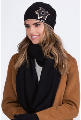 Главная страница Женские шапки ТМ Kamea ЖЕНСКАЯ ШЕРСТЯНАЯ ШАПКА С КРАСИВЫМ ЦВЕТКОМ НА БОКУ "ПАНАМА" (PANAMA) - 20.042.08В чёрный+золото