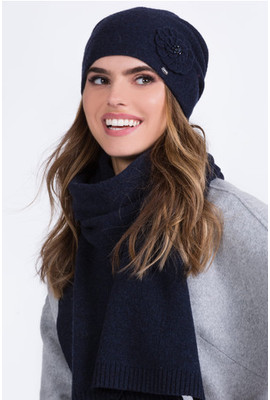 Главная страница Женские шапки ТМ Kamea ОДИНАРНАЯ ШАПКА С ЦВЕТКОМ "МЕГИ" (MEGI) - 20.037.12 тёмно-синий