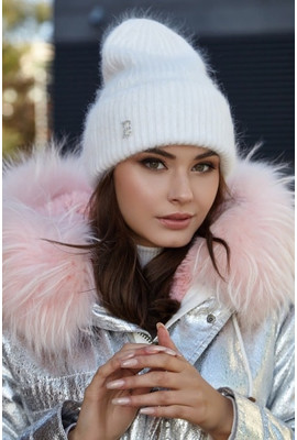 Шапка-колпак с подворотом и флисовой полосой (ангора) - 4939 белый